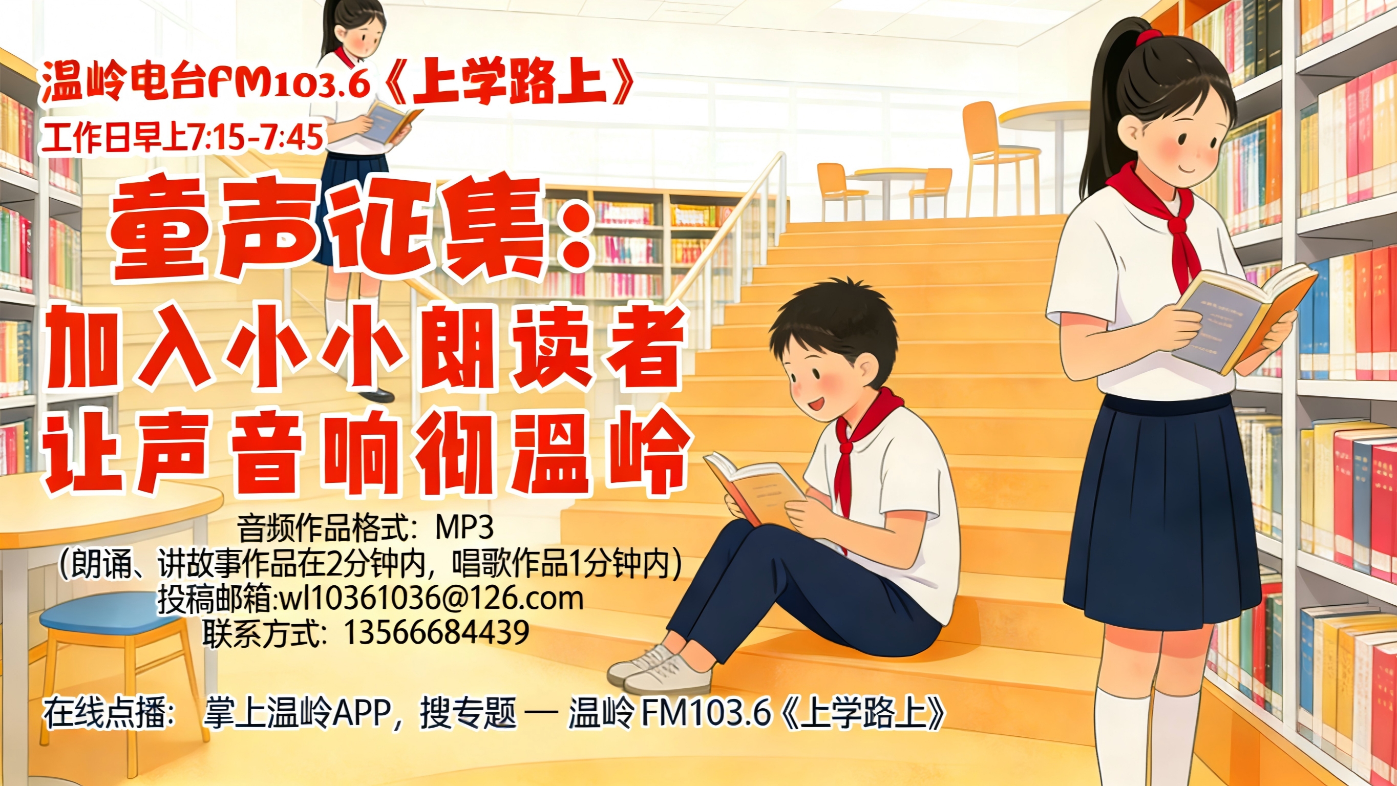 7:15--7:45欢迎大家打开调频广播FM1036《上学路上》收听